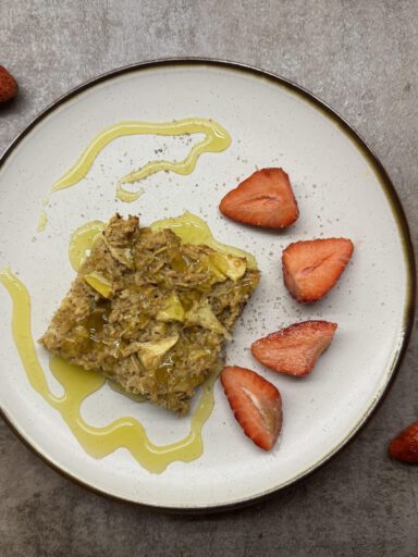 Я додала в класичний рецепт одне середнє яблуко — для свіжості та аромату, а щоб зберегти пишність, підсипала трохи більше борошна.