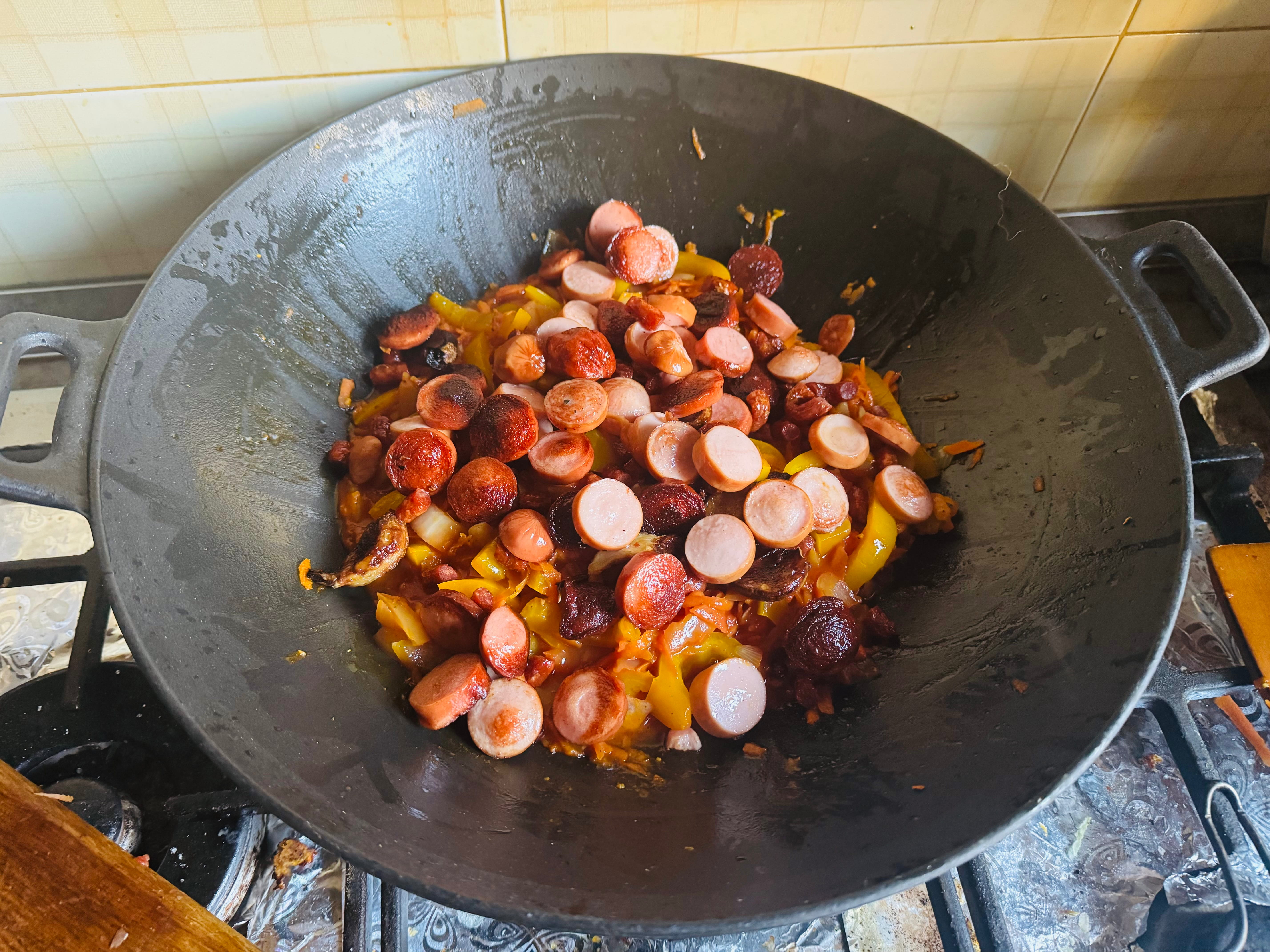 Вилийте лечо, дайте масі прогрітися і злегка потомитися, зберігаючи текстуру — без перетворення в пюре.